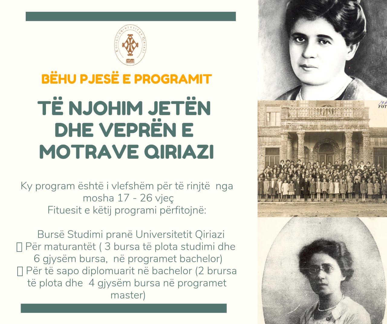Kolegji Universitar “Qiriazi” në bashkëpunim me Institutin Amerikan Qiriazi dhe Student Economic Forum, kanë nisur tashmë një fushatë promovuese dhe ndricuese, për jetën, veprën dhe kontributin e motrave “Qiriazi”, në arsimin kombëtar shqiptar. Kolegji Universitar “Qiriazi”, duke i konsideruar të rinjtë si ambasadorët më të mire të promovimit, të vlerave të spikatura të historisë së […]