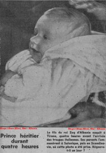 Djali i mbretit Zog lindi në Tiranë, katër orë para ardhjes së trupave italiane. Prindërit e tij e dërguan atë në Selanik, pastaj në Skandinavi, ku dhe është realizuar kjo fotografi. A do të mbretërojë ai një ditë ? ”