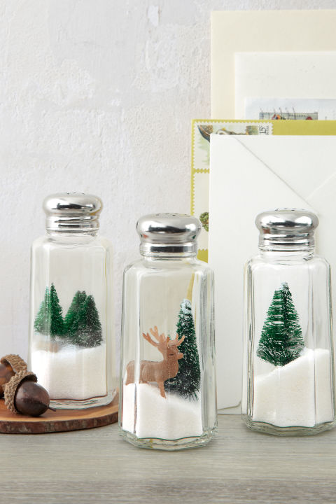 Shishet e vogla në të cilat mbani kripën janë perfekte për zbukurim. Nuk e besoni? Blini pemë Krishtlindjesh të vogla dhe futini një nga një në shishet që dispononi dhe shikoni se si keni krijuar një pamje aq të këndshme festive!