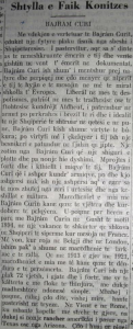 “Me vdekjen e vërtetuar të Bajram Currit, zhduket një fytyrë plaku fisnik nga sheshi i shqiptarësisë. I pastërvitur aqë sa s’dinte as të nënshkruante emrin e tij dhe vinte gishtin në vend të emrit në dokumentat. Bajram Curri ishte shumë i mendshëm prej natyre dhe përpiqej në çdo mënyrë që nipërit e tij të hyjin e të mësojnë në më të mirat shkolla të Evropës.